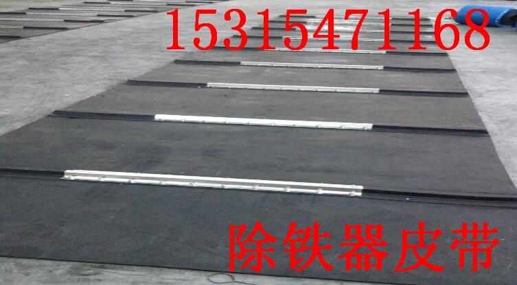 除铁器卸铁皮带主要是安装在各个型号的电磁、永磁自卸式除铁器上,当输料皮带上的散状物料经过自卸除铁器底部时,混杂在物料中的铁磁性杂质在除铁器磁芯强大的磁场力作用下被吸附到除铁器卸铁皮带上,由不停运转的卸铁皮带将吸附住的铁杂质刮出,卸进集铁箱,从而达到自动连续除铁的目的。无需人工清理,实现了自动化除铁。